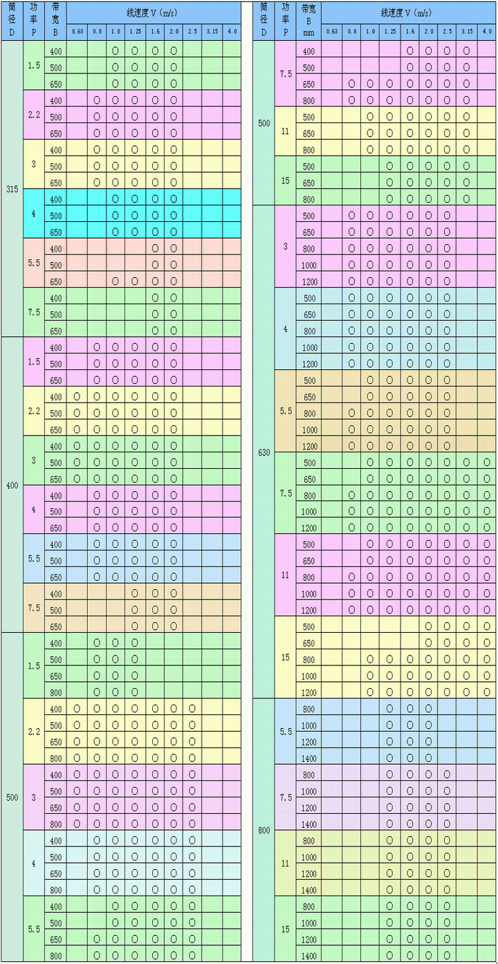 WD 型外裝式電動滾筒系列參數(shù)表: