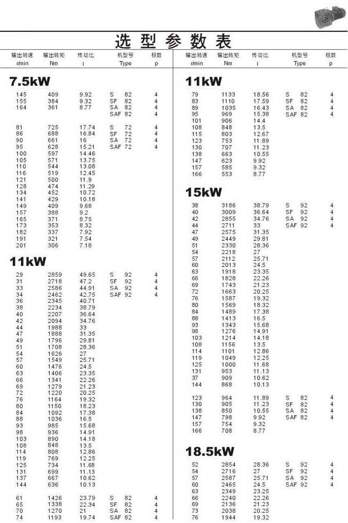 選型參數表7.5kW(續(xù)),11kW,15kW,18.5kW